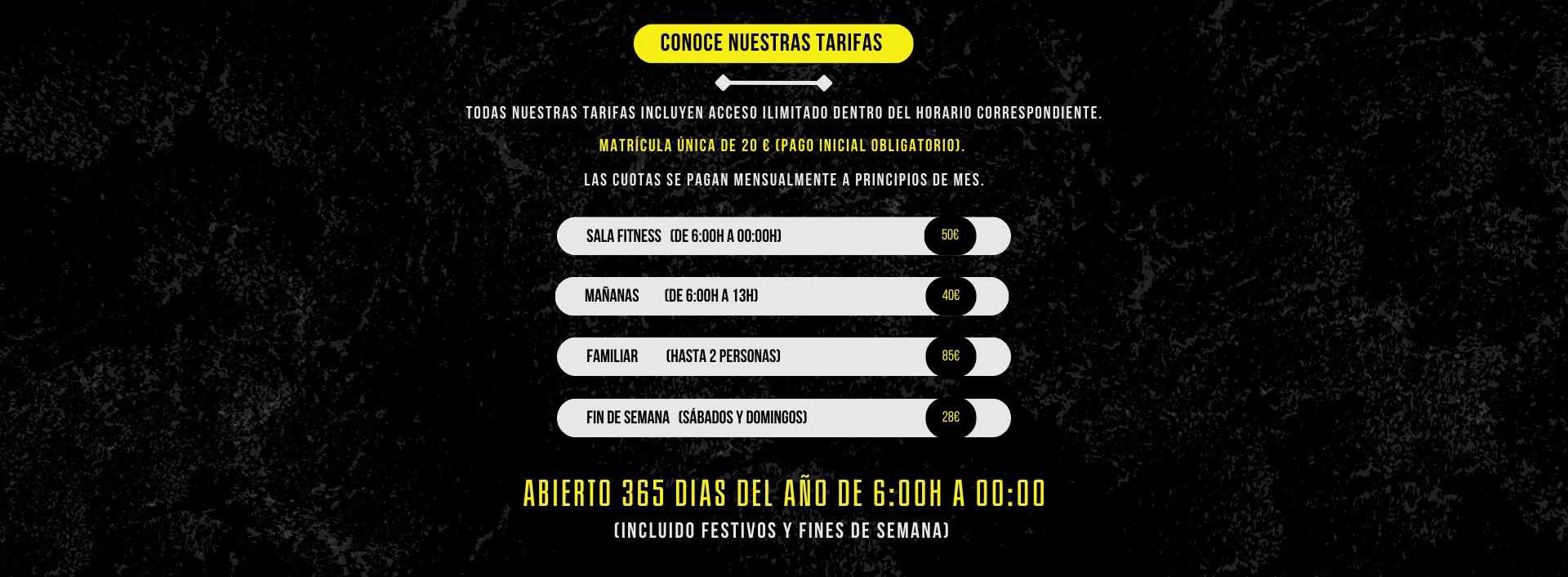 Cuota mensual, que da acceso al centro para utilizar la sala fitness y disfrutar de las actividades dirigidas, que deben reservarse a coste cero en el horario de la cuota, en caso de tener esta cuota.